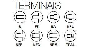 Terminais full-face disponíveis até somente pressão de 150PSI, acima somente niples integrais.