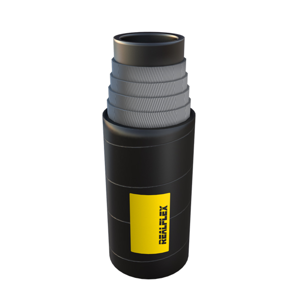 • Cobertura: lisa (enfaixada), de borracha preta resistente a abrasão, intempéries e ozônio.